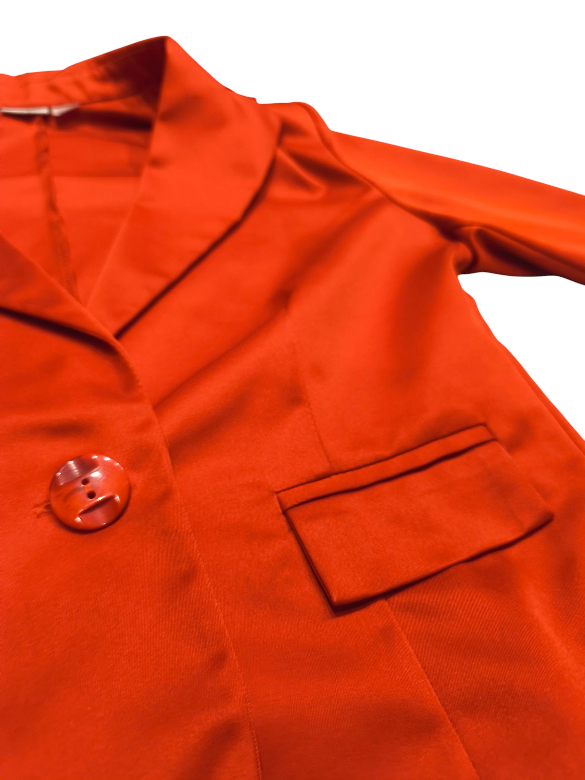 DAM-MIEL Women’s Vibrant Red Blazer with Striped Cuffs