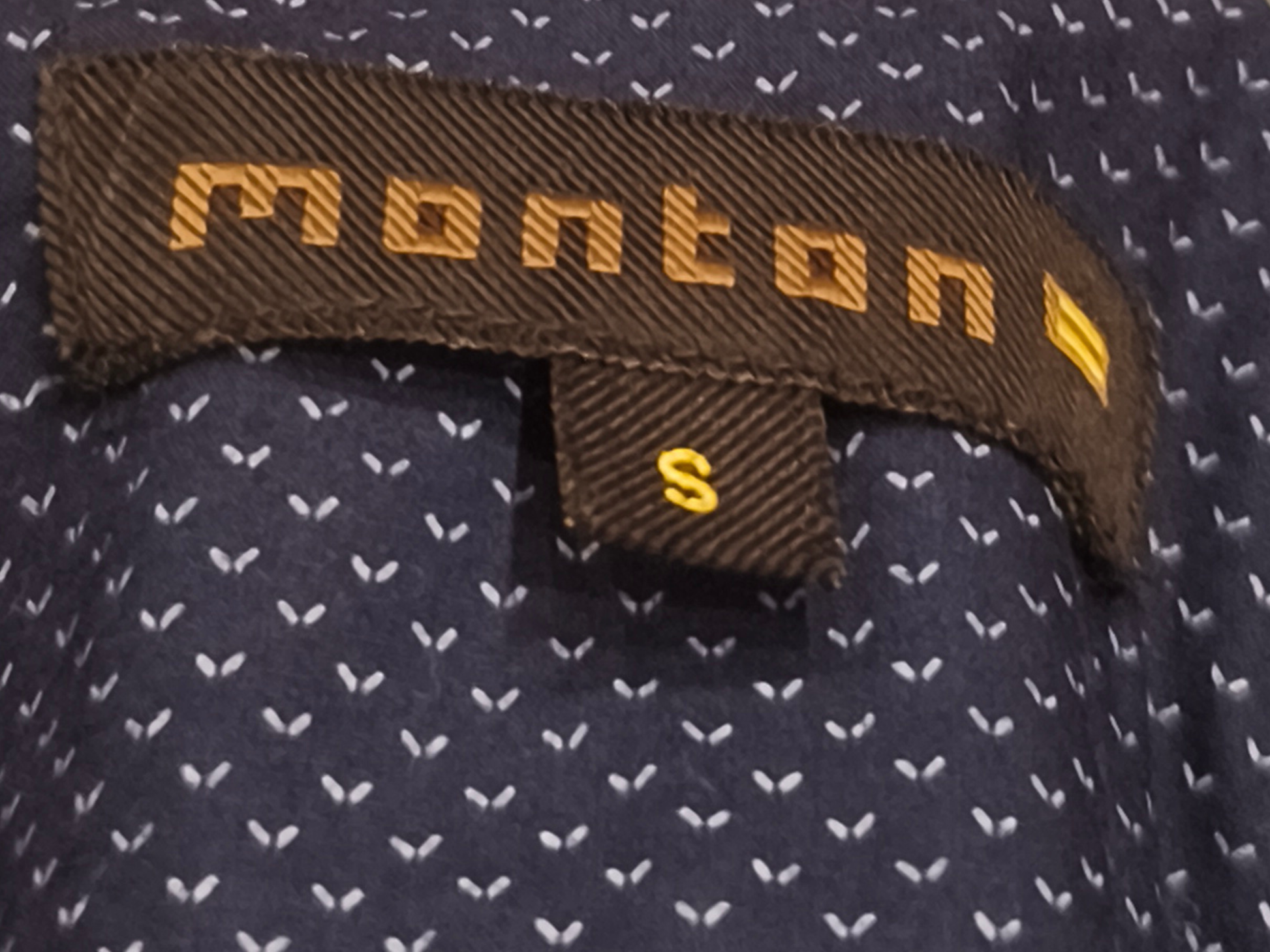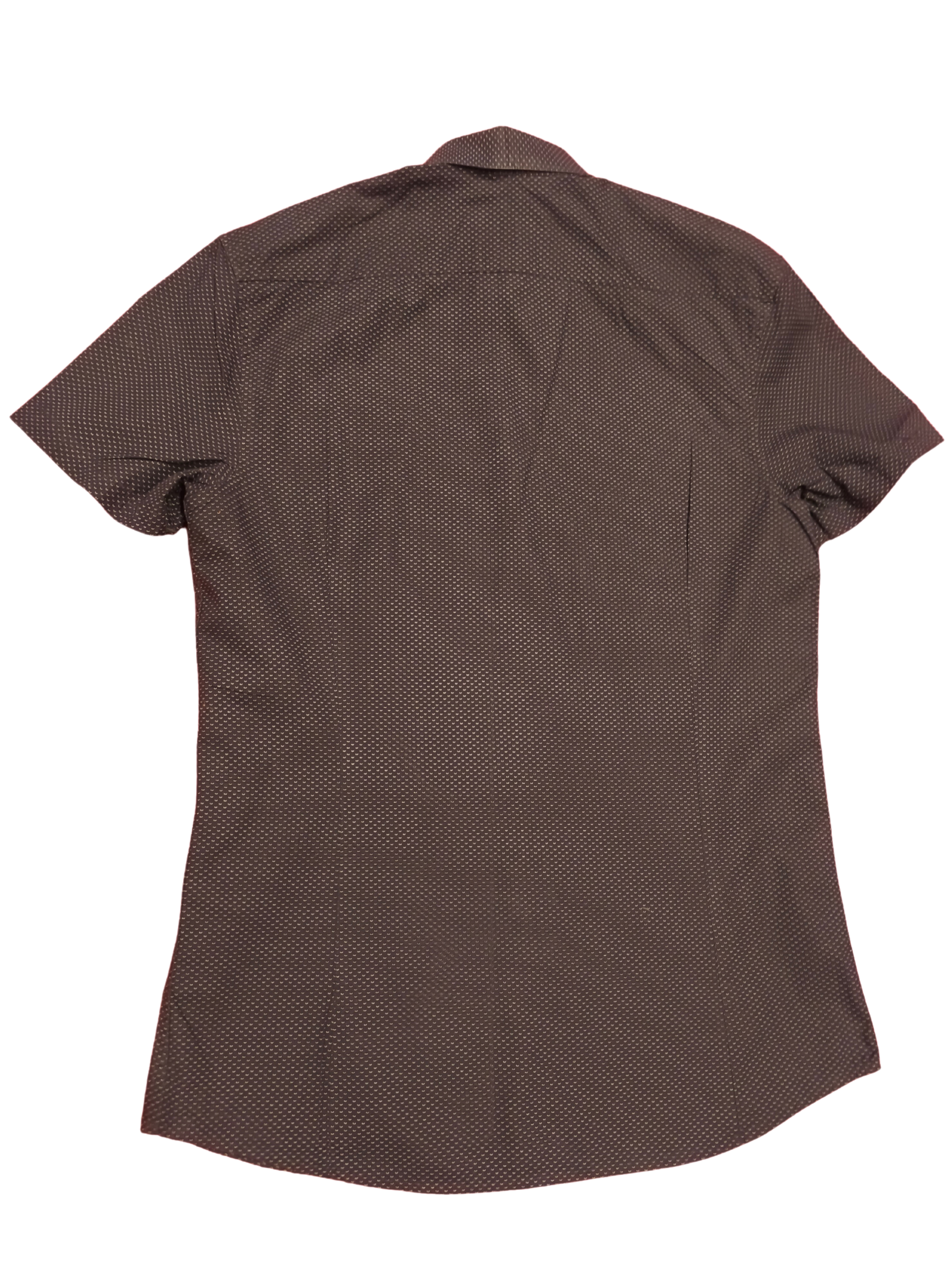Monton Men's Short Sleeve Button Down Shirt Size S Small Slim Fit Navy Micro Pat
