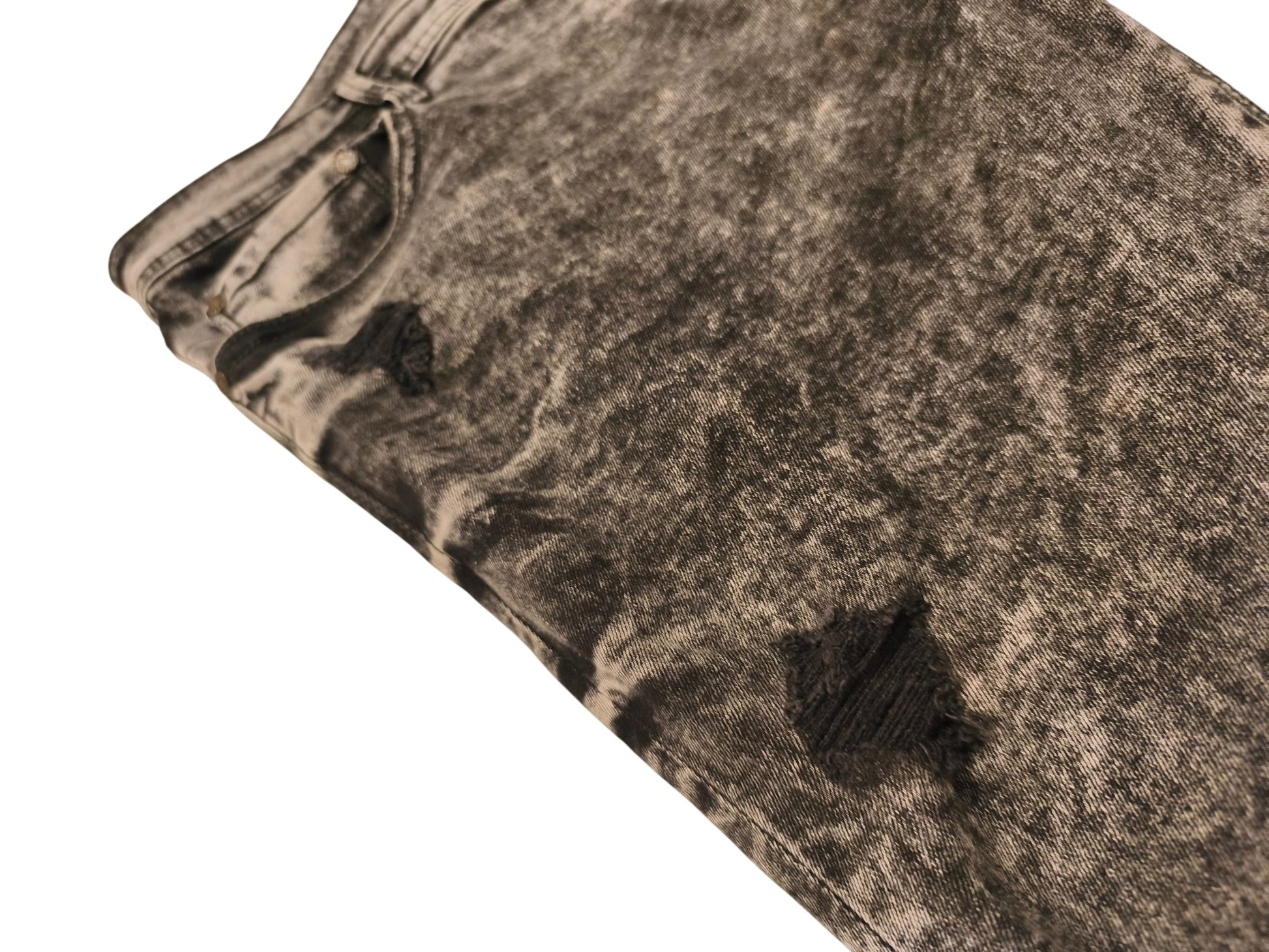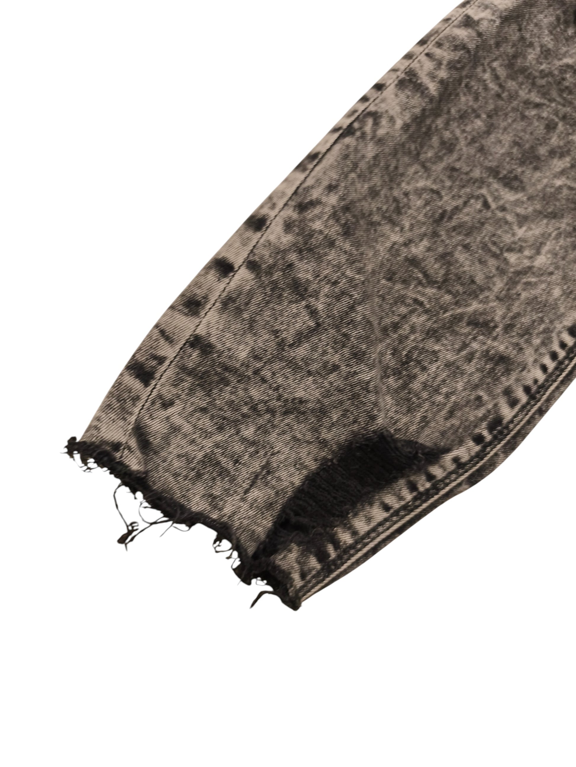 Design: Acid wash grey with frayed "raw" hems at the ankles.