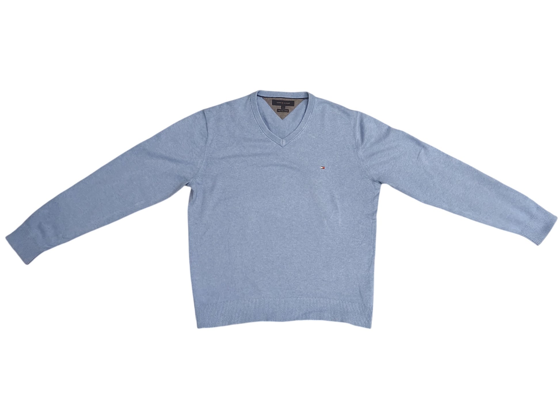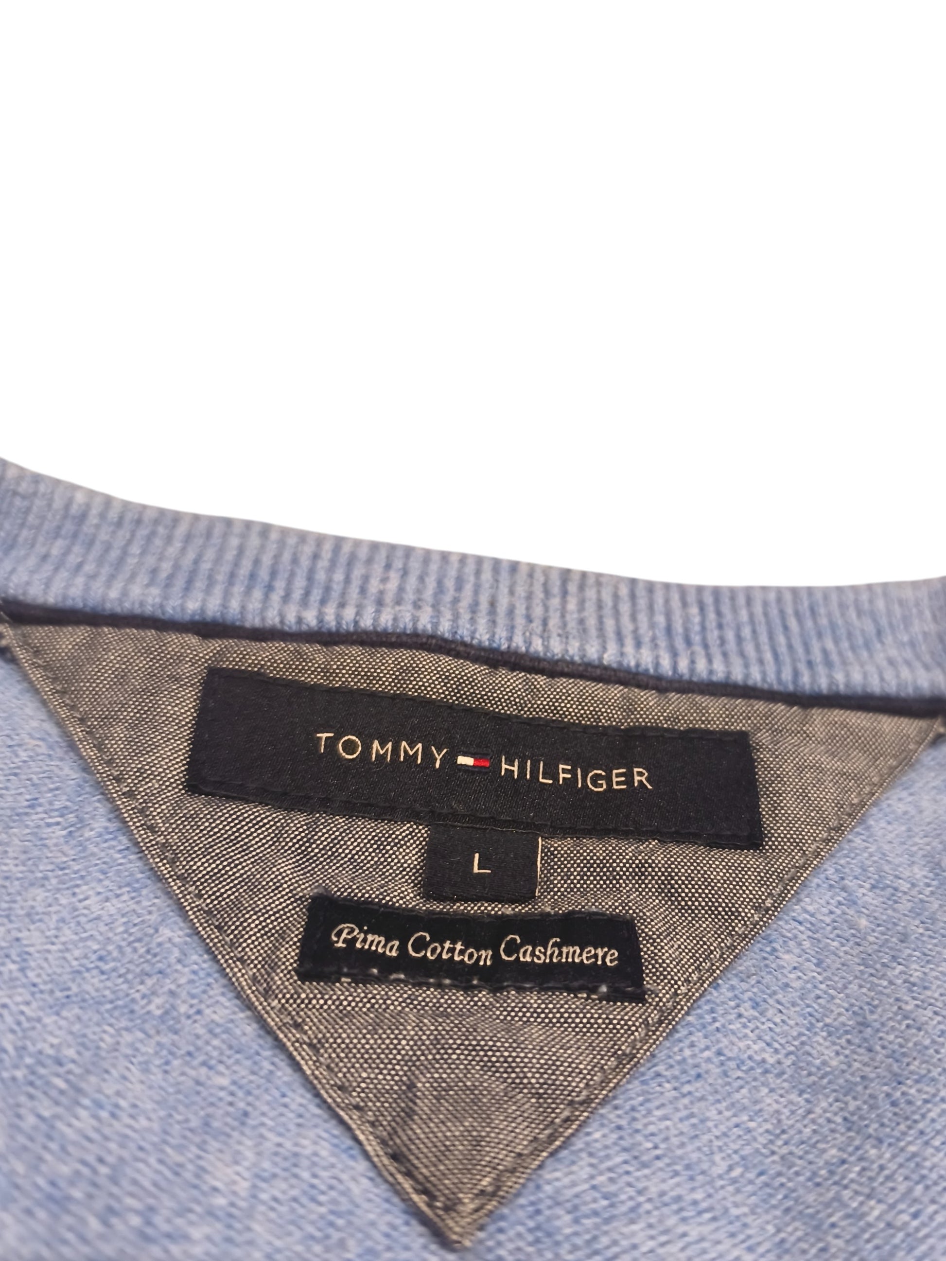 Tommy Hilfiger Men's V-Neck Sweater Light Blue Pima Cotton Cashmere Blend Size