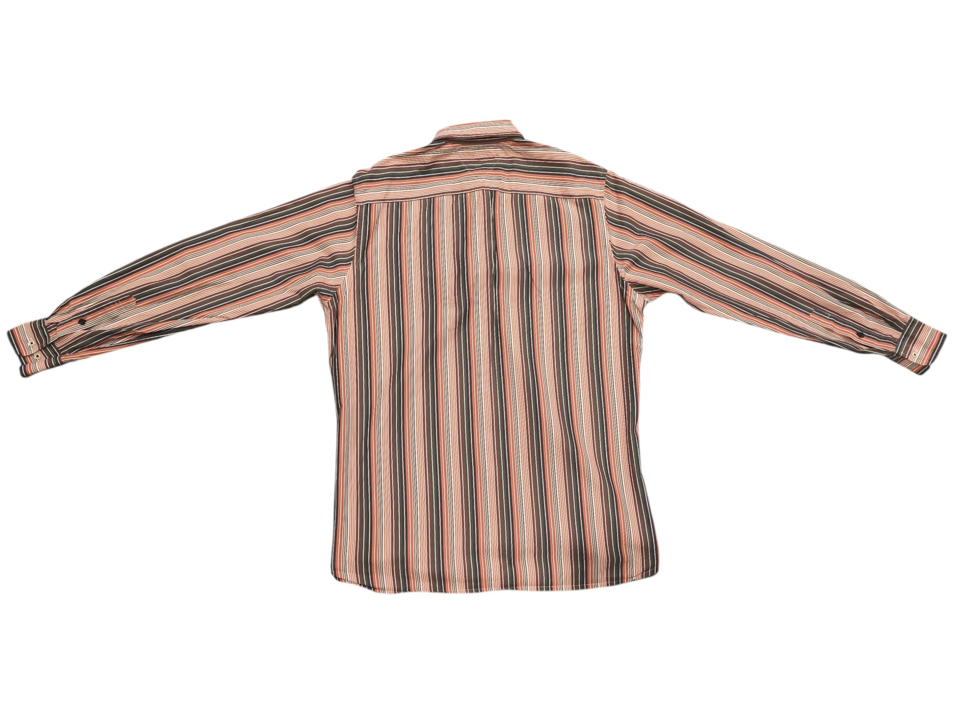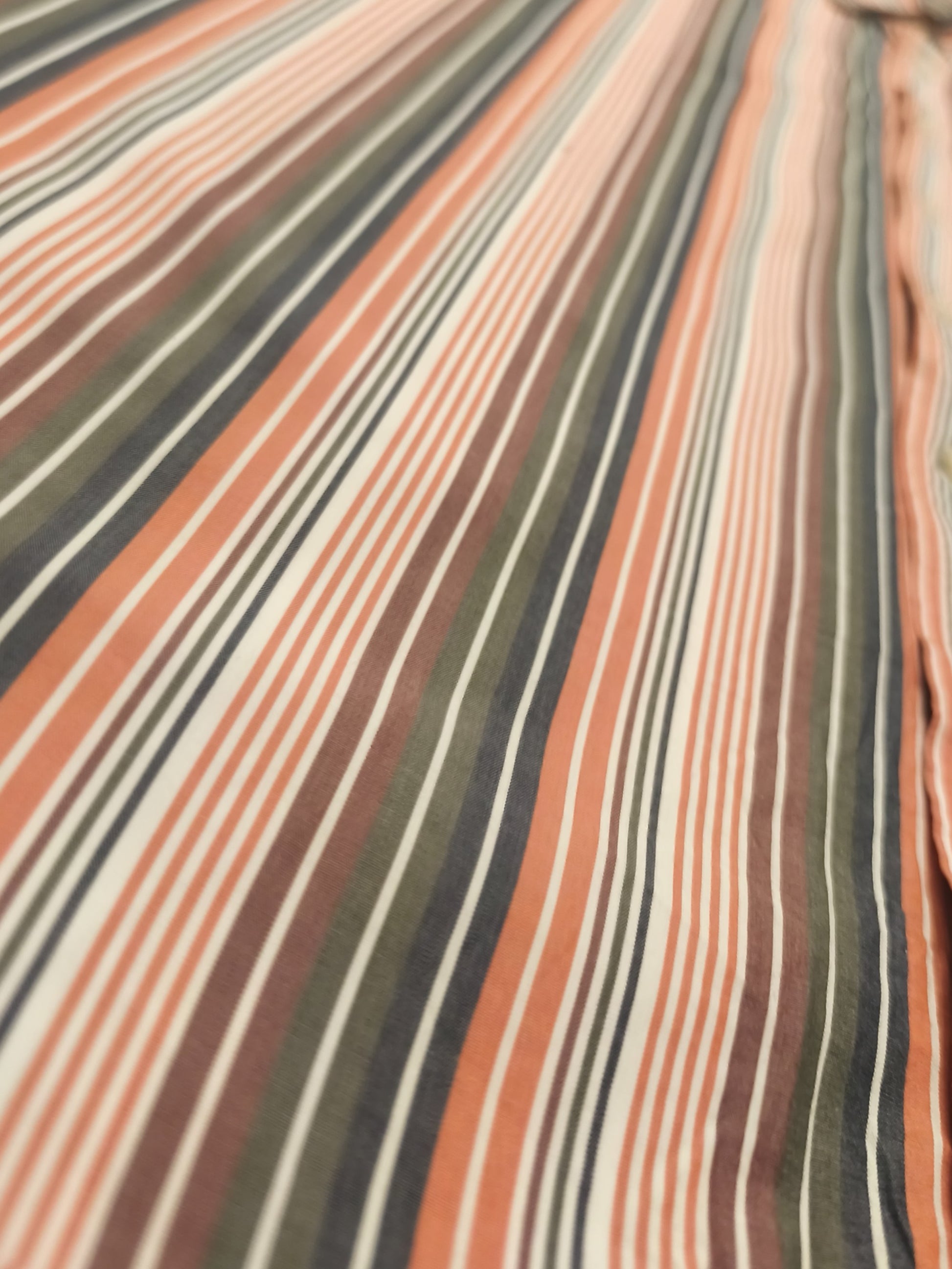 Pattern: Multi-color vertical stripes (Orange, Blue, Green, Grey, White)
