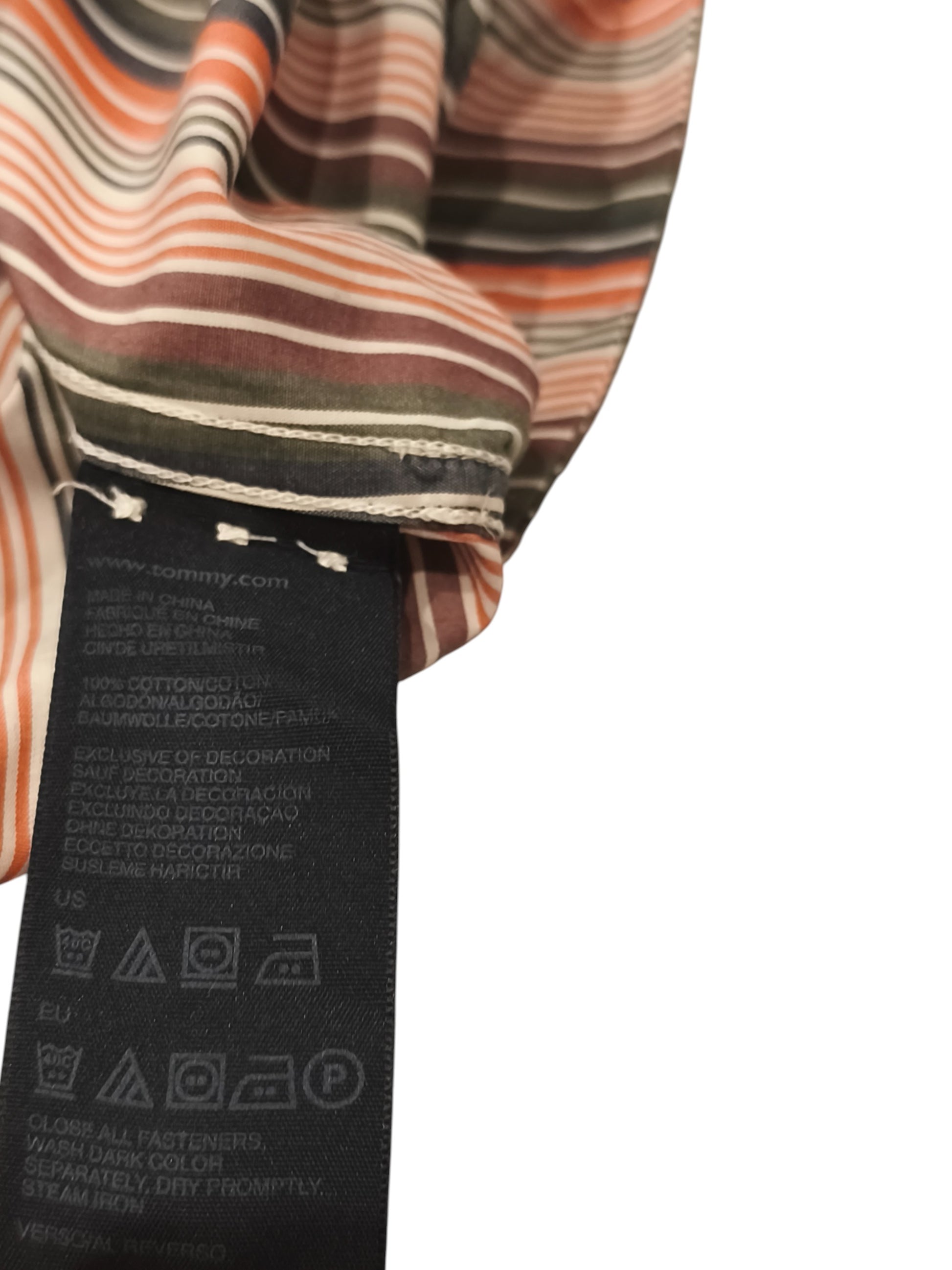 Tommy Hilfiger Shirt Mens Large Custom Fit Long Sleeve Multi Stripe Cotton Logo