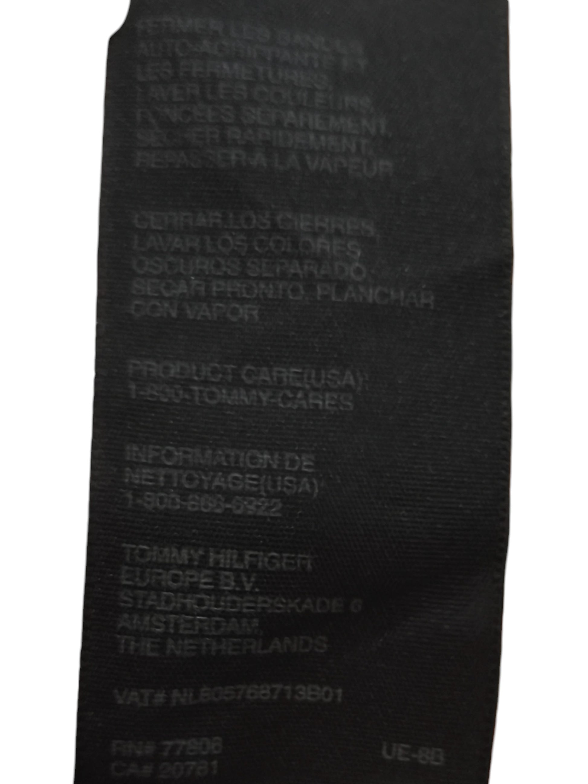 Logo: The embroidered Tommy Hilfiger flag logo is intact with no loose threads.