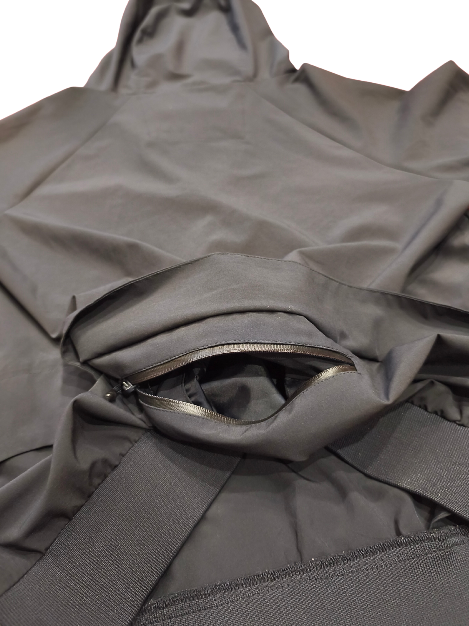 Zara Man Tech Hooded Windbreaker Pullover Jacket Black Side Zip Back Pocket M